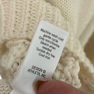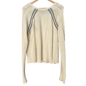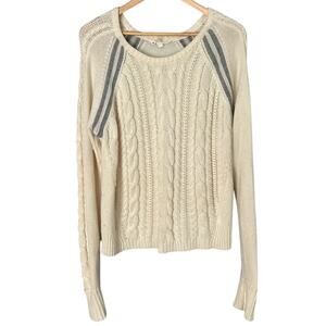 Athleta Cable Knit Montara Sweater Women's Large Raglan Sleeve Wool Cream Grey