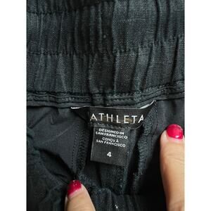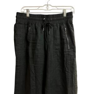 Athleta Cabo 100% Linen Pull-on Elastic Waist Pants Black 4