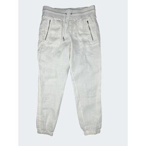 Athleta Cabo Lily Linen Jogger Pants White Size 6 Elastic Waist Lightweight