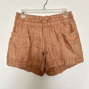 Athleta Cabo Linen 4" Short in Toasted Ochre Orange Striped Summer Size 4
