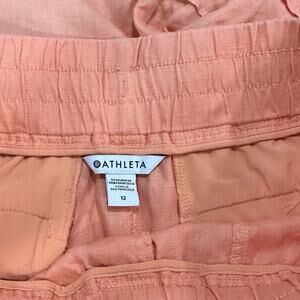 Athleta Cabo Linen 4" Shorts Pull on Drawstring Cactus Peach Coral size 12