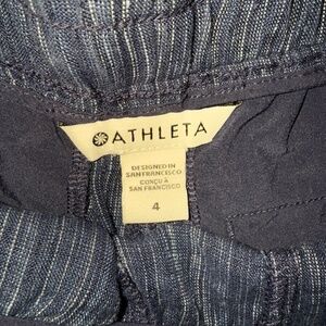 Athleta Cabo Linen 4 inch Blue Striped Pull On Drawstring Shorts Size 4