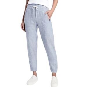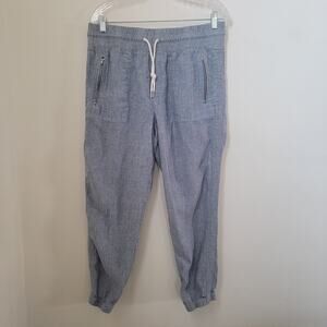 Athleta Cabo Linen Chambray Denim Jogger Pant Stretch Drawstring Waist Sz 12