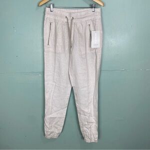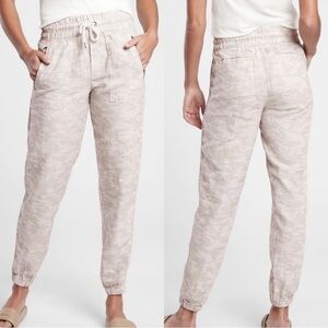 Athleta Cabo Linen Jogger Cream Micro Cheetah Sz 6 Tall 988237