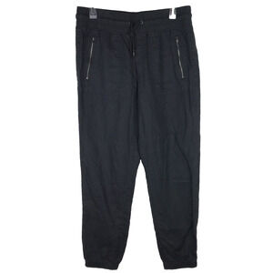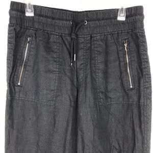 FLAWED Athleta Cabo Linen Jogger Pants Drawstring Elastic Waist Black Zip Pockets Women's Size 8