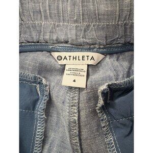 Athleta Cabo Linen Jogger Pants Womens Size 4 Chambray Blue Zip Pockets