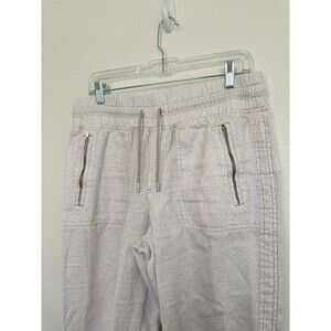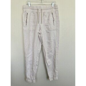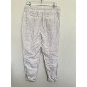Athleta Cabo Linen Joggers White Drawstring Micro Cheetah Beach Women's Size 10