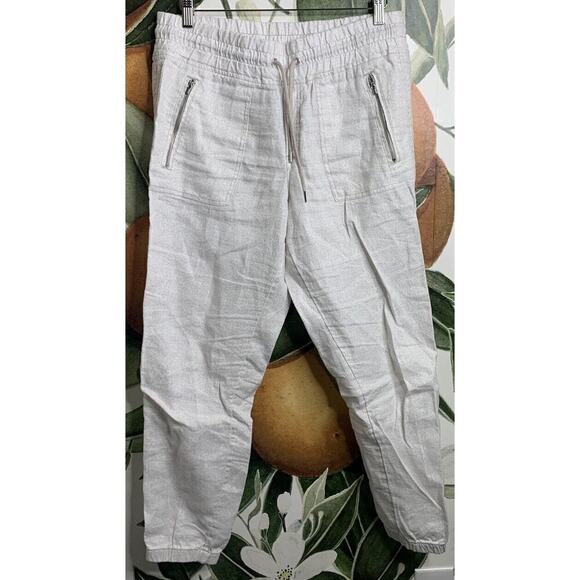 Athleta Cabo Linen Pants Size 10 Cheetah Drawstring Jogger Beige