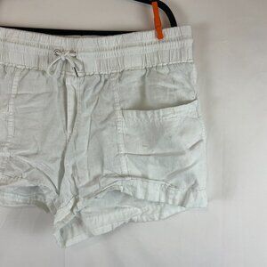 Athleta Cabo Linen Shorts 4" White 16 Elastic Tie Waist Pockets