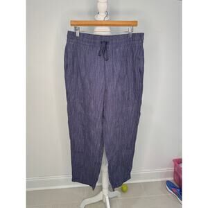 Athleta Cabo Linen Textured Yaper leg Pants Blue Women's Size M Flowy