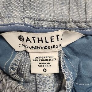 Athleta Cabo Linen Wide Leg Pant Blue Lagenlook Boho Wide Leg Pull On Coastal S0