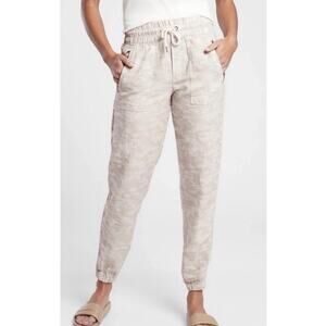 Athleta Cabo Tide Jogger Pants 100% Linen Cream Ivory Pattern