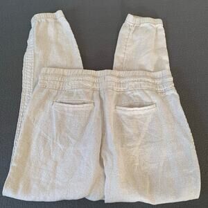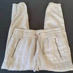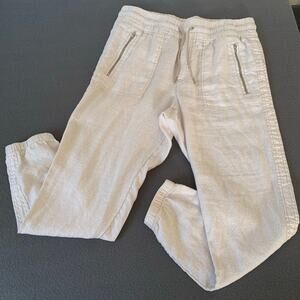 Athleta Cabo Tide Jogger Pants 100% Linen Cream Ivory Pattern Pull On Size 10