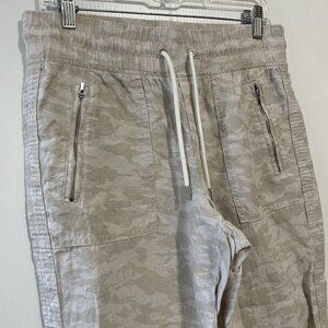 Athleta Cabo Tide Linen Jogger Pants Sz 6 Camo Crop Ankle Pull On Pockets