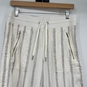 Athleta Cabo Tide Linen Wide Leg Pants Women’s 4 Cream Nautical Striped Beach