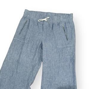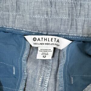 Athleta Cabo Wide Leg Linen Pant Sz 12 Blue Athleisure Minimalist Casual Comfort
