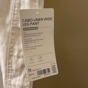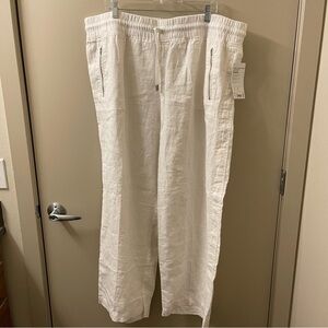 Athleta Cabo linen pant wide leg mid rise plus size pull on pants size 22 white