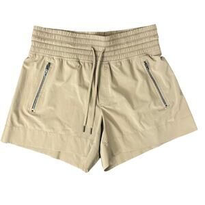 Athleta Camden Tan Khaki Elastic Waist Zipper Pockets Lightweight Shorts Size 6