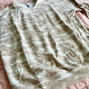 Athleta Camo Print Balance Sweatshirt Tan And Cream Soft Women's Size Medium