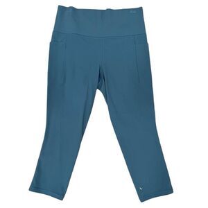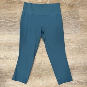 Athleta Capri Leggings Women Medium Turquoise Salutation Stash Pocket II Stretch
