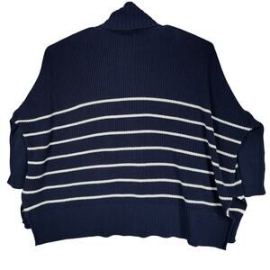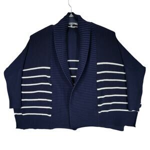 Athleta Cardigan Sweater L Women Peaceful Wrap Navy Blue White Stripe Nautical