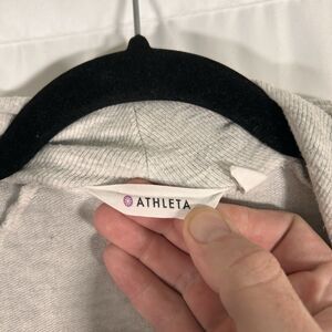 Athleta Cardigan Women's Medium Grey White Open Front Pockets Modal Blend