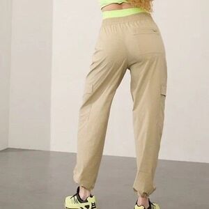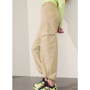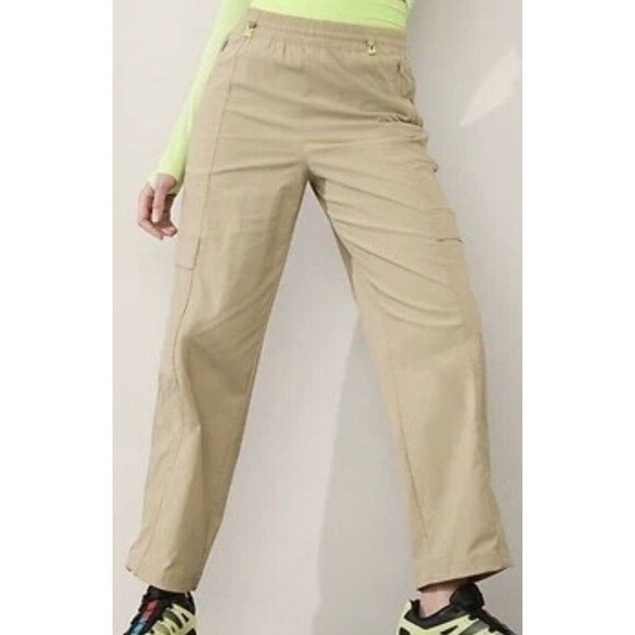 Athleta Cascade High Rise Cargo Poplin Pants Pockets UV Breathable Oak Tan Sz L