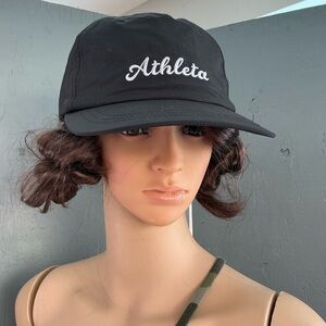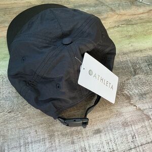 Comfortable charcoal cap for kids. Features Athleta logo. Ideal for casual outings.