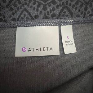 Athleta Cassava Strata Aztec Southwest Skirt is a stylish skirt with zipper pockets in black and gray. It's a size small, perfect for an active and trendy lifestyle.