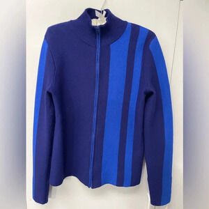 This warm and comfy zip up cardigan is great for ski days (or apres ski!). Beautiful blue on blue monochromatic colorway. Sleeves have thumb holes. Excellent condition! See photos for measurement details.