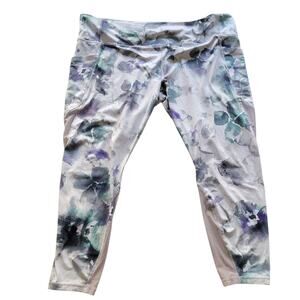 Athleta Chaturanga Mudra Mesh Capri Leggings Women’s 2X Blue Gray Floral Crop