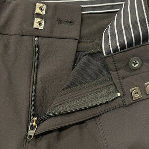 These high-waist performance cargo pants feature a zip hook front closure, side hand pockets, front cargo pockets, and back zip pockets, with skinny leg. Excellent condition, black, size 2