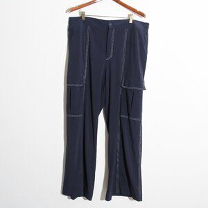 Athleta Chelsea Utility Wide Leg Pant High Rise Navy Blue Contrast Stitch Sz 16