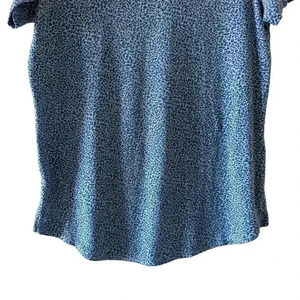 Athleta Chrome Blue Cheetah Breezy Scoop V-Neck Athleisure Tee Shirt SZ L #2135