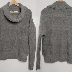 wool cashmere blend, long sleeve, cowl Turtleneck, cable knit