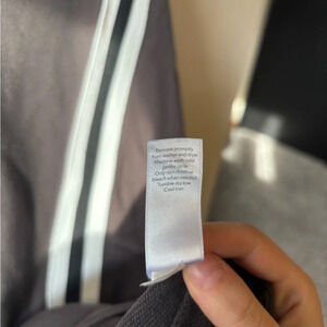 Athleta Circa Tracksuit dress in a dark grey color with white stripes down the sleeves. Features zipper pockets and a zipup neck. Size S