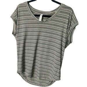 Athleta Cloudlight Stratus Tee Scoop Neck Oversized Stripe Gray Black Sz M