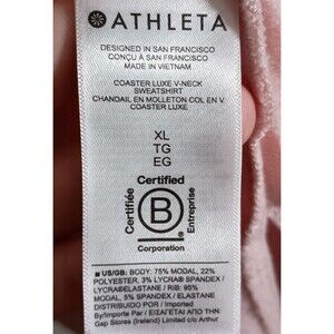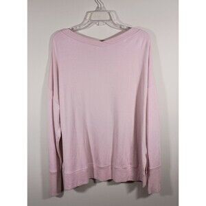 Athleta Coaster Luxe V-Neck Sweatshirt Sweater Thumbholes Pink Womens Size XL