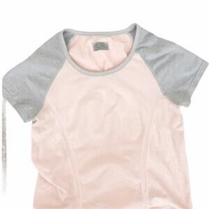 Athleta Color Block Fast Track Tee Ruched Pink Gray Sz XS