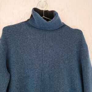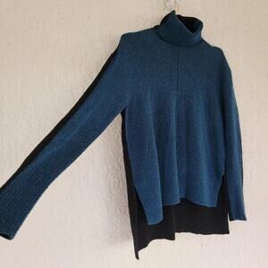 Athleta Colorblock Merino Wool Turtleneck Sweater Women Size S Long Sleeve Teal Blue Black
