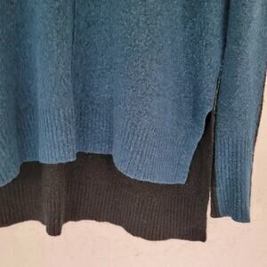 Cozy up in this chic Athleta Colorblock Merino Wool Turtleneck Sweater, designed with modern contrast tones and a relaxed fit. The front features a teal blue panel, while the back is solid black, creating a sleek, minimal aesthetic. Made with a soft merino wool blend, this sweater offers warmth without bulk. The high-low hem with side slits provides easy movement and a flattering silhouette, perfect for layering with jeans or leggings for an effortlessly polished look.