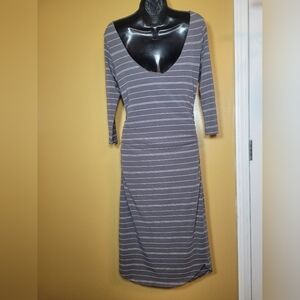 Athleta Comeback Striped Ruched Midi Length Long Sleeve Dress sz S 779703
