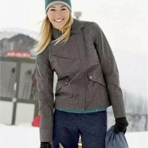 Asymmetrical Zip-Up Long Sleeve Pockets Lined Jacker from Athleta. It's relatively lightweight, close to a rain jacket / windbreaker feel. Excellent used condition!