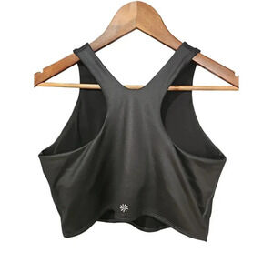Athleta Conscious Crop Bikini Top in Black. Size M / Medium. Features high neck, sleeveless, racerback, and cropped length. Style 531084. Excellent pre-owned condition, no flaws.