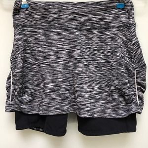 Athleta skort in Space Dye with solid black biker length shorts underneath