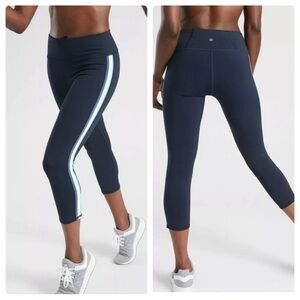 Athleta Contender Side Stripe Capri Powerlift Navy