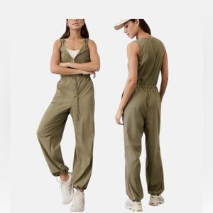 athleta romper, cosmic flutter romper, sage green romper, athletic romper, travel romper, athleisure romper, sleeveless romper, womens one piece, casual summer romper, work travel outfit