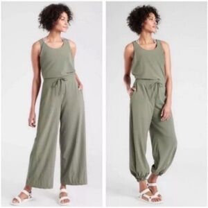 Athleta Cosmic Flutter Romper Sage Green Size Medium Sleeveless Elastic Travel
