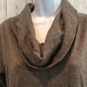 Brown, long sleeves, high/low, ribbed waistband and cuffs, cowl neck,colors may vary due to lighting, good used condition, Sz: M