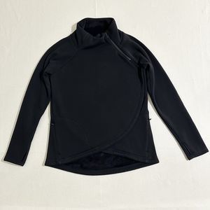 Athleta Cozy Karma Asym Pullover Black Women Size Small Zip Neck Fleece Jacket